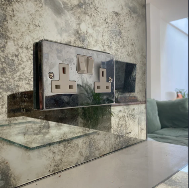 Our Antique Mirror Tiles can be drilled or cut for sockets. We recommend you visit a local glass cutting shop for any specialist cuts along with your cutting template. Your fitter may also be able to help with this.